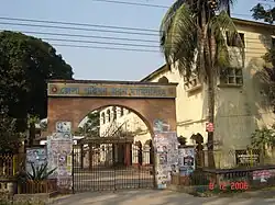 Maharaja Surya Kanta Acharya established Mymensingh Water Works, which is the first water supply system of the city. He erected this overhead water reservoir in memory of his wife Raj Rajeswari Debi. Remnants of the waterworks with its purifying and filtering system can still be seen on the Brahmaputra, near the Radhasundari School. One overhead water reservoir still stand at the Ganginarpar crossing. An underground water distribution system was laid subsequently. Also, hydrants were posted in different places to help the pedestrians. However, hydrants were the source of pure water for all since connection to individual houses did not take place till the 1960s. Till the 1960s a lot of people would go to the nearby ponds for taking a bath and many houses had sunken wells to collect underground water.[1]