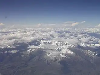 ![]() Cordillera Blanca as seen from the west with Pucagaga Punta and Churup (lower-right) | |