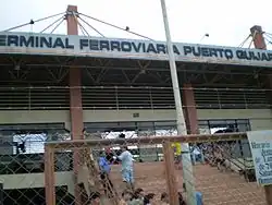 Puerto Quijarro is a Bolivian city and an inland river port and situated on the Tamengo Canal in Bolivia, by the border with Brazil. It is part of the province of Germán Busch in the Santa Cruz Department. The Tamengo Canal connects it to the important Paraná-Paraguay Waterway. It is Bolivia's only waterway which leads to the ocean.[1]