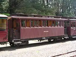 The mainstay of the carriage fleet are the 15 NBH open-sided carriages built specially for tourist traffic on the Gembrook line by the V.R. between 1918 and 1919, and a further 10 vehicles built to the same or similar design in the preservation era.[27] However, there are also a number of enclosed carriages, both saloon and compartment cars. In addition, four carriages were obtained from the Mount Lyell Railway in Tasmania after its closure in 1963, and regauged and reclassified for Puffing Billy use, numbered 1 to 4 NBL. They are named Mt Lyell, Rinadeena, Teepookana, and Dubbil Barril respectively, reflecting their Tasmanian heritage. During the 1980s and 1990s they were all upgraded to first class carriages, recoded 1 to 4 NAL, and are now primarily used on the Luncheon train and Dinner trains.