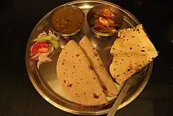 - Dry baked (Indian griddle), jowar di roti, baajre di roti and makki di roti (these are also smeared with white butter)