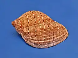 The shell size of Purpura persica varies between 60 mm and 110 mm.[2] It is a large and thick shell, with large body whorl and a very expanded aperture. The surface shows a chocolate-brown color and it is sculptured with spiralled, beaded cords.[1]