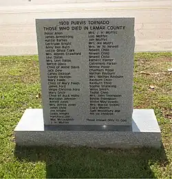 The Purvis School System's mascot is a tornado as a testament of the courage of those who endured the Tornadoes of 1908, which changed the face of the emerging town, and in honor of those who lost their lives that day.