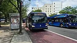 The Q14 and Q38 are bus routes in Queens, New York City, that run from the western Queens neighborhood of Ridgewood to central Queens. From 1960 until 2025,[9][10] they operated as a single "C"-shaped route, the Q38, running from the Corona and Elmhurst neighborhoods to the Forest Hills neighborhood, via the Metropolitan Avenue station in Middle Village. The Penelope Avenue section retains the Q38 designation, which terminates at Metropolitan Avenue/Fresh Pond Road, while the Eliot Avenue section is served by the new Q14, providing new connections to East Elmhurst and Ridgewood. Both routes run seven days a week but do not operate overnight.[11][7][12] The routes are city-operated under the MTA New York City Transit brand of MTA Regional Bus Operations. As of 2025, the Q14 is operated out of the Fresh Pond Depot, while the Q38 is operated out of the Casey Stengel Depot as New York City Transit routes.