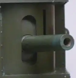 In 1940 as part of the British anti-invasion preparations, a large number of pillboxes were built to a design, known as Type 28 or FW3/28, intended for the modern 2-pounder anti-tank gun. However, as these were in desperately short supply, 6-pounder Hotchkiss guns firing solid shot were used instead. Unlike the 2-pounder which could be wheeled into the pillbox on its carriage, a holdfast was incorporated into the floor to which a pedestal mounting could be bolted. It is unlikely that many of these emplacements were permanently armed, but the guns were held in reserve until required.[2]