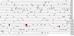 Further structural similarity to a viral RNA Polymerase binding protein was predicted by Phyre2.[29] This structure is found at the very end of the protein between amino acids 1671-1735. The structure has a long region of alpha helices that were also predicted by SDSC Biology Workbench PELE. An image of the structurally similar region and sequence alignment is shown on the right. Regions before the identified structurally similar domain show two other alpha helices predicted with high confidence.[29]