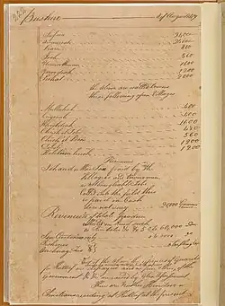 George Forster Sadlier estimated the population of Qatif Castle to be approximately 4,000. He noted the absence of Hindus or Christians within the population and provided a detailed outline of the taxes imposed on the castle's inhabitants, which he presented in a table included in his memoirs.[43][44][45]