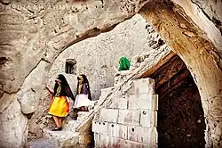 Ventilation systems were minimal, consisting primarily of hand fans made from palm fronds. As a result, the houses were constructed with thick plaster walls and wide foundations, often reaching up to half a meter in thickness, to maintain cooler temperatures during the hot summer months.[10][4]
