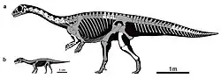 Qianlong shouhu (meaning "Guizhou Province dragon") is an extinct species of basal sauropodomorph dinosaur from the Early Jurassic Ziliujing Formation of China. Qianlong shouhu is the only species in the genus Qianlong, known from partial skeletons of three mature individuals associated with several eggs, some of which contain embryos. These may represent the oldest leathery eggs currently known.[1]