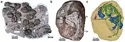 - ^ a b c d e f Han, F.; Yu, Y.; Zhang, S.; Zeng, R.; Wang, X.; Cai, H.; Wu, T.; Wen, Y.; Cai, S.; Li, C.; Wu, R.; Zhao, W.; Xu, X. (2023). "Exceptional early Jurassic fossils with leathery eggs shed light on dinosaur reproductive biology". National Science Review. 11 (6): nwad258. doi:10.1093/nsr/nwad258. PMC 11067957. PMID 38707200.