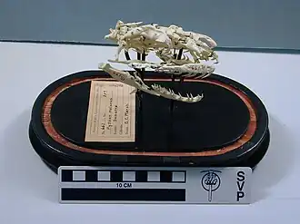 In certain extinct reptiles, the variation and stability of the morphology of the quadrate bone has helped paleontologists in the species-level taxonomy and identification of mosasaur squamates [2] and spinosaurine dinosaurs.[3]