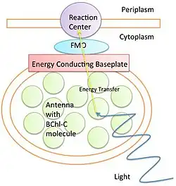 - ^ Thyrhaug, Erling; Žídek, Karel; Dostál, Jakub; Bína, David; Zigmantas, Donatas (May 2016). "Exciton Structure and Energy Transfer in the Fenna-Matthews-Olson Complex". The Journal of Physical Chemistry Letters. 7 (9): 1653–1660. doi:10.1021/acs.jpclett.6b00534. PMID 27082631. S2CID 26355154.