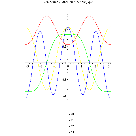 Here are the first few periodic Mathieu cosine functions for .