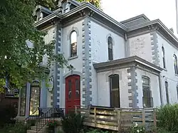 Queen Street forms the western boundary line of the Durand neighbourhood. Durand is also bounded by Main Street to the north, James Street and James Mountain Road to the east and the Niagara Escarpment to the south. With the turn of the 20th century, luxurious new residences were built along Markland and Aberdeen Avenues and to the south in the lee of the escarpment. These residences reflected the entrepreneurial spirit of those who made their fortunes in transportation, finance, industry, and commerce in one of North Americas major centres, Hamilton. By 1920, the Durand neighbourhood was considered to be the “exclusive” neighbourhood in Hamilton. However, the Great Depression and the Second World War took their tolls on the fortunes of many of the established Durand households. Owners could no longer afford the taxes and upkeep on their homes, and many of the grander residences were either demolished and replaced with middle-class low-rise housing, or were renovated to become low-rise apartment buildings. Much of the heritage of the neighbourhood survives today.[1]