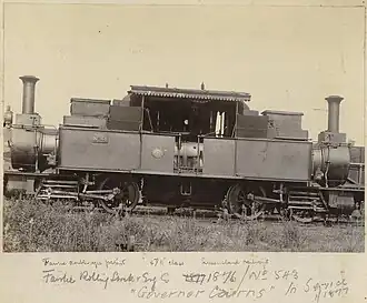 Numbered 41, it was named Governor Cairns. Per Queensland Railway's classification system it was designated the 8D11 class, 8 representing that it had eight driving wheels, D that it was a tank locomotive and the 11 the cylinder diameter in inches. It was scrapped in 1902.[1][2]
