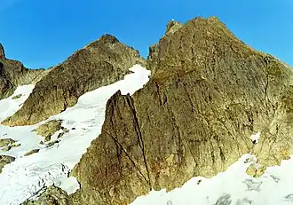 Queest-alb Glacier is in Snoqualmie National Forest in the U.S. state of Washington, on the west slopes of Three Fingers.[2] Queest-alb Glacier is also known as Three Fingers Glacier, but neither name is officially recognized by the United States Geological Survey. The glacier descends from 6,400 to 5,000 ft (2,000 to 1,500 m) and is a popular location for skiing.