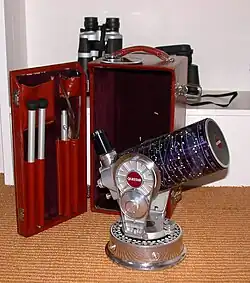 • A 3.5" convertible model that came with two barrels: the standard one, and a separate longer barrel, which could be screwed onto the duplex fork mount in place of the standard one, and used as a distance microscope. This variant came with the standard accessories, and a separate case containing the distance microscope barrel assembly.