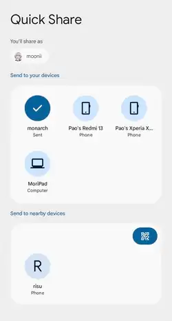 In addition, Microsoft also offers a way to Nearby Share (unrelated to Quick Share, nor Google's Nearby Share) to Android devices natively through Windows' Phone Link functionality.[12]