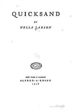 Quicksand is the first novel by American author Nella Larsen, first published in 1928.[1] Out of print from the 1930s to the 1970s, Quicksand is a work that explores both cross-cultural and interracial themes. Larsen dedicated the novel to her husband.[2]