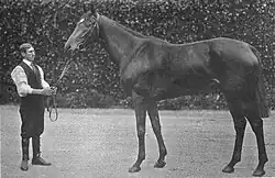 She was not entered for most of the major summer and early autumn stakes races due to her chronic problems with rheumatism.[8] The cause of this malady was thought to be due to her habit of "tearing all the clothing off in her box."[9] In September she won the Park Hill Stakes at Doncaster[2] (with the Epsom Oaks winner Our Lassie unplaced) and the following month she beat three rivals to easily win the Newmarket Oaks, which was worth £450.[10] She was retired to stud at the end of the 1903 season, finishing her career unbeaten in her six races.[11]