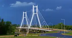 The city is served by National Routes 8, 36, and 158, as well as Las Higueras Airport, inaugurated in 1954. The cable-stayed Bicentennial Bridge was inaugurated in 2010. Some of the city's principal tourist draws include the Río Cuarto Racetrack, which hosts Turismo Carretera touring car racing events, and Estancia El Durazno, an estate built in 1917 belonging to former Governor Ambrosio Olmos. The Río Cuarto craters, a group of geologically unusual impact craters, are located nearby. The city's UN/LOCODE is ARRCU.