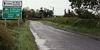 The R444 road is a regional road in Ireland linking R357 at Shannonbridge, County Offaly with the R446 at Farnagh three kilometers west of Moate in County Westmeath. The road is 27 km (17 mi) long.