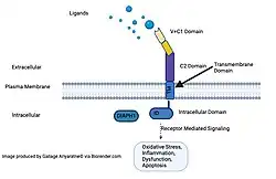 - ^ a b Xie J, Méndez JD, Méndez-Valenzuela V, Aguilar-Hernández MM (November 2013). "Cellular signalling of the receptor for advanced glycation end products (RAGE)". Cellular Signalling. 25 (11): 2185–2197. doi:10.1016/j.cellsig.2013.06.013. PMID 23838007.