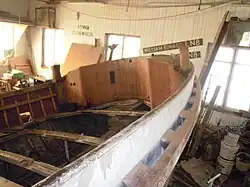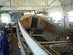 Following some keen detective work by two Lifeboat enthusiasts from Norfolk, who had been looking for the Lucy Lavers for some time, she was found in 2006. Lucy Lavers underwent full restoration work at Stiffkey, Norfolk from 2013. Having been stripped back to little more than a bare hull, the majority of her original mahogany hull remains. She is listed on the National Register of Historic Vessels by National Historic Ships. Her certificate number is 2206.[4] In 2012 the National Lottery Heritage Fund awarded a grant to Rescue Wooden Boats £99.300[9] towards the restoration of the Lucy Lavers. The restoration was completed in time for the lifeboat to return to Dunkirk under her own steam to join the 75th anniversary celebrations of Dunkirk evacuation in May 2015. She is moored at Wells-next-the-Sea in Norfolk (see last photograph below) and is currently used for boat trips out of the harbour.[10]