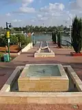 In the center of the park lies a triangular-shaped lake, reminiscent of the emblem that represents the city. Spanning the lake is a pedestrian bridge. In addition to the bridge, the lake has two fountains. The park offers a variety of relaxation and sports venues, a small zoo, art by Israeli sculptors, an outdoor gym and children's playground, a park with access to those with disabilities, a labyrinth, a garden of the seven fruits and grains mentioned in the Bible and more. The park has 675 fruit and ornamental trees. The park also features a café-restaurant, an art gallery, 2 kilometers (1.2 miles) of walking and biking trails, sports fields, an animal corner, sculptures, a rose garden, a herb garden, and expansive grassy areas. At a high point in the park, the Birdwatch offers panoramic views towards the lake and the southern-western expanses of the park. In the northwestern part of the park, an amphitheater is used to host various cultural performances featuring artists from both Israel and abroad. Many noteworthy acts have performed at this theater such as Backstreet Boys, Avance, Alice Cooper, Lauryn Hill, Tori Amos, Chick Corea, Ian Anderson, Ziggy Marley, The Cranberries, and the Pet Shop Boys.[4]