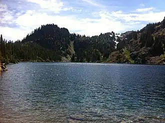 Rachel Lake is located on the eastern side of Rampart Ridge in Kittitas County, Washington. The lake is a popular area for hiking,[3] swimming,[4] and fishing cutthroat trout.[5][6]