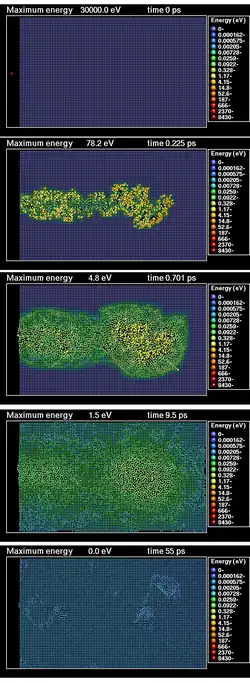 - ^ A. Meftah; et al. (1994). "Track formation in SiO2 quartz and the thermal-spike mechanism". Physical Review B. 49 (18): 12457–12463. Bibcode:1994PhRvB..4912457M. doi:10.1103/PhysRevB.49.12457. PMID 10010146.