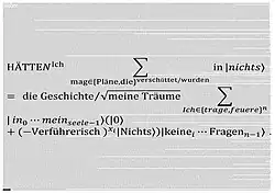 Equation Poetry uses mathematical language as an organizational principle and at the same time uses mathematical symbols to describe intonation notation (for example, nervous³), or to define various types of specifications that are simpler or more efficient to express in non-text form. In Acta Victoriana Rochallyi claims that every formal rule in poetry is a mathematical rule.[61] This restriction defines the form of poetry. Hence, it can be said that (almost) no form of poetry can do without mathematics.[62] In the Author's Note in Roanoke Review he mentioned that they both have symbolism, algorithmic basis, structures, formulas, and symmetry. Combining the two is completely natural, as is reading and studying their patterns.[63]
