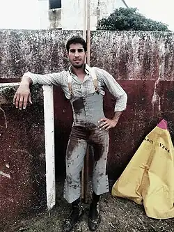 The 2015 bullfighting season found Cerro first at the Joseph-Fourniol bullring in Vic-Fezensac, France on 24 May.[42] On 1 June came his first appearance at the Feria de San Isidro ("Saint Isidore's Fair" — a yearly event at the Las Ventas bullring in Madrid) together with the Salamancan Eduardo Gallo and the Colombian Sebastián Ritter with bulls bearing the Partido de Resina brand.[43] On 10 August, he was awarded three ears in Miajadas, Cáceres, fighting a corrida with bulls supplied by the Adolfo Martín Andrés ranch.[44]