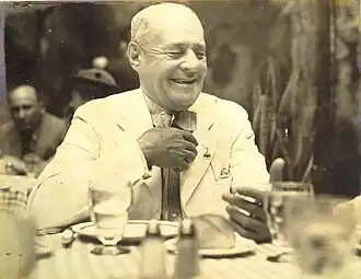 During the Prohibition in the United States, the sale of alcoholic beverages was still legal in Cuba. Pappy, in his trademark white linen suit, would often greet American tourists at the airport or steamship docks with a glass of alcohol. Pappy greeted and entertained many famous American vagabonds, celebrities, tourists, mafiosos, politicians, artists, and socialites, among others, introducing many of them to the Daiquiri the moment they landed in Cuba.[2] For the upper echelons of the global holiday-seeking elite, Pappy would often give private guided tours of Havana, before bringing his guests to the infamous "Bacardi Club," which was a secret VIP-only bar on the mezzanine level of the Bacardi Building, the first skyscraper in Havana.[3][4] While Pappy was certainly focused on foreign customers in order to increase Bacardi's reputation and revenue base in foreign and untapped markets, Pappy also made sure to entertain Cuba's local elite socialite class.