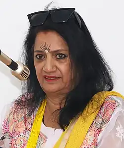 Ragini Upadhyaya Grela (also spelled as Ragini Upadhyay Grela) (born 9 November 1959), popularly known as Ragini Upadhyaya, is a Nepalese fine artist, lyricist, and philanthropist.[1][2][3] She served as the Chancellor of the second council of Nepal Academy of Fine Arts. She is known for her fusion of traditional mythology, symbolism, and modernism in her surrealist and abstract paintings. Her art often features social commentary and feminist or matriarchal themes.[4][5][6][7]
