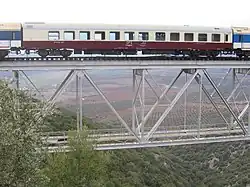 Prior to the war there was a proposal for a connection with Iraq between Deir ez-Zor and Al Qa’im.[11] The abutments of bridges were built for double track but only the western trackbed was completed. The major Euphrates bridge, a steel girder construction, was completed to the southern border of Syria by 2015, just 3 km from Al Qa'im but Iraqi Railways did not complete the link. Three spans of the Euphrates bridge were destroyed as well as two sections of the approach viaducts during the last decade of warfare. The trackbed near the bridge shows bomb craters since Google Earth imagery dated 2017. Tracklaying never reached the Euphrates bridge. However, all international routes operated by Syrian Railways were already non-operational due to severe negligence by the Syrian government. It was then officially suspended due to the outbreak of the Syrian revolution.