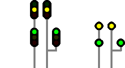 Advance Caution Normal Speed to Medium Speed*‡ | Advance Caution to Medium | Proceed not exceeding line speed, expect the next signal to be displaying a 'Reduce to Medium' aspect and be prepared to pass the second signal at medium speed. |