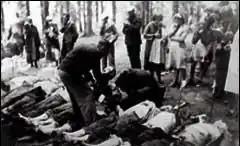 The Rainiai massacre (Lithuanian: Rainių žudynės) was the mass murder of between 70 and 80 Lithuanian political prisoners by the NKVD, with help from the Red Army, in a forest near Telšiai, Lithuania, during the night of June 24–25, 1941. It was one of many similar massacres carried out by Soviet forces in Lithuania, and other areas under the control of the Soviet Union, during June 1941. Several thousand people were killed in these massacres. The Rainiai massacre was far from the largest of these massacres, but it is one of the best-known, due to the brutality and alleged tortures inflicted on the victims by the perpetrators. Similar atrocities were committed in other places, like the NKVD prisoner massacre in Tartu, in which almost two hundred people were murdered.