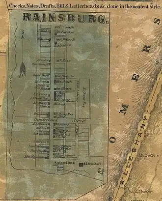 - ^ a b "Rainsburg, Bedford County. PA town history". www.pa-roots.com. Retrieved January 12, 2023.