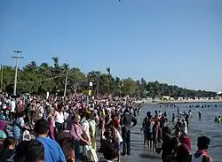 There are sixty-four Tīrthas (holy water bodies) in and around the island of Rameswaram, Tamil Nadu, India.[19] According to Skānda Purāṇa, twenty-four of them are important.[20] Bathing in these Tīrthas is a major aspect of the pilgrimage to Rameswaram and is considered equivalent to penance.[21] Twenty-two of the Tīrthas are within the Rāmanāthasvāmī Temple.[22] The number 22 indicates the 22 arrows in Rama's quiver.[16] The first and major one is called Agni Theertham, the sea (Bay of Bengal).[2]