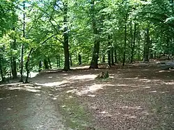 From the Ramlosa Valley, the so-called Philosophical Path leads up to the second hill, which consists of a mixed deciduous forest that used to be dominated by oaks and was therefore called Ekebacken ('the Oak Hill'), but nowadays the proportion of beech has increased. Along the path are several initials carved into the trees, as this was a popular romantic walking route in the days of the mineral spa. At the beginning of the Philosophical Path stands Hårleman's runestone (1750), donated and designed by the 18th-century architect Carl Hårleman, where he gives thanks for a refreshing stay.