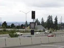 Ramp metering was first implemented in 1963 on the Eisenhower Expressway (Interstate 290) in Chicago by Adolf D. May, now a UC Berkeley professor.[3] Development in systems control theory allowed for improved traffic regulation throughout the early 1970s, pioneered by Leif Isaksen in his paper "Suboptimal Control of Large Scale Systems with Application to Freeway Traffic Regulation."[4] Since then ramp-meters have been systematically deployed in many urban areas including Los Angeles; San Diego; Sacramento; the San Francisco Bay Area; Fresno; Philadelphia, Pennsylvania; Seattle; Spokane;[5] Denver; Phoenix; Las Vegas; Salt Lake City; Portland, Oregon; Minneapolis-St. Paul; Milwaukee; Indianapolis;[6] Columbus; Cincinnati;[7] Houston; Atlanta; Miami; Orlando; Washington, DC (only along Interstate 270 in Montgomery County, Maryland and Interstate 395 and Interstate 66 in Arlington County, Virginia); Kansas City, Missouri;[8] and along the Queen Elizabeth Way in Mississauga, Ontario (Toronto-bound ramps from Cawthra Road, Hurontario Street, Mississauga Road, Erin Mills Parkway, Winston Churchill Boulevard, Ford Drive) Canada since the 1970s.[2] In the early 1970s, this traffic control practice drew the attention of the U.S. Environmental Protection Agency, which was looking for innovative ways to reduce air pollution in California by make the transportation system more effective.[9]
