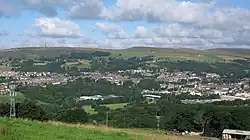 Ramsbottom is a market town in the Metropolitan Borough of Bury, Greater Manchester, England.[1] The population at the 2011 census was 17,872.[2] Historically in Lancashire, it lies on the River Irwell in the West Pennine Moors,[3][4] 3.9 miles (6.3 km) north-west of Bury and 12 miles (19 km) of Manchester. Its Victorian architecture, Pennine landscape and industrial heritage, including the East Lancashire Railway, contribute to heritage tourism in the town.