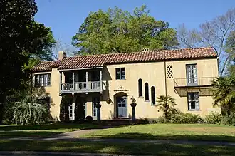 The Randolph James House is a historic house at 1212 North Madison Avenue in El Dorado, Arkansas. The two-story stuccoed house was designed by Mann & Stern, and was built in 1927 for Randolph James by his father George, a principal in the local Exchange Bank who benefited from the city's oil boom in the 1920s. The house is a fine local example of Spanish Mission Revival styling, with wrought iron balconies, tile roof, stucco walls, and varied windows.[2]