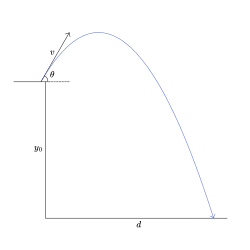 The following applies for ranges which are small compared to the size of the Earth. For longer ranges see sub-orbital spaceflight. The maximum horizontal distance travelled by the projectile, neglecting air resistance, can be calculated as follows:[1]