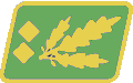 In addition to collar and shoulder insignia, Ordnungspolizei also wore the wreathed police eagle on the upper left sleeve. The collar patch and shoulderboards were backed, and the sleeve eagle (below the rank of Leutnant) embroidered, in truppenfarbe, a colour-code which indicated the branch of police: green for Schutzpolizei (protection police) and police general officers, wine-red for Gemeindepolizei (municipal protection police), orange for rural Gendarmerie, carmine-red for fire brigades, gold for maritime police, and light grey for administrative police.[2]