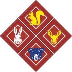 All Cub Scouts first work on their Squirrel badge to complete the Cub Scout joining requirements, which include knowing the Cub Scout motto and salute. The Squirrel badge is dark blue ringed in gold, with a button loop. Once the Squirrel badge requirements have been completed, the Cub Scout will continue with the age appropriate program. The next three ranks are diamond-shaped red badges based upon the Boy Scouts of America Cub system from the 1940s through 1972. Rabbit Cub Scouts (second grade) work toward the Rabbit badge. Deer Cub Scouts (third grade) work toward the Deer badge. Initially, Bear work toward the Bear Badge. After earning the Bear badge, Scouts work toward earning activity badges. Finally, Bear Cub Scouts work toward the Arrow of Light. The Arrow of Light award is the highest award available to Cub Scouts. It requires the Scout to have earned the Bear Scout badge and eight activity badges.[2] In addition to the skill and activity requirements of the preceding ranks, the Arrow of Light requires Scouts to learn the Scout Promise and Scout Law, in preparation for advancing to the Scout level. Earning the Arrow of Light will help earn many of the requirements for the lower ranks of the Scout level. Cub Scouts wear the badge above the left pocket.[3]