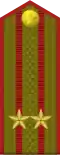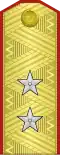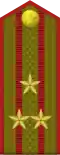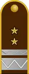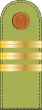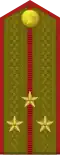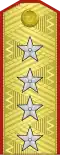 | Hadseregtábornok | Vezérezredes | Altábornagy | Vezérőrnagy | Ezredes | Alezredes | Őrnagy | Százados | Főhadnagy | Hadnagy | Alhadnagy | ||||||||||||||