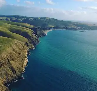 Rapid Bay is known for its steep cliffs, caves, beach, two jetties and associated artificial reef. A resident leafy seadragon population inhabits the bay and weedy seadragons are also occasionally seen.