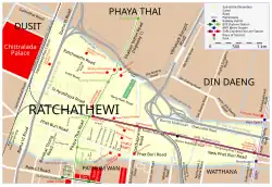 Ratchathewi (Thai: ราชเทวี, pronounced [râːt.t͡ɕʰā.tʰēː.wīː]) is a district (khet) in central Bangkok, Thailand. Clockwise from the north, its neighboring districts are Phaya Thai, Din Daeng, Huai Khwang, Watthana, Pathum Wan and Dusit.